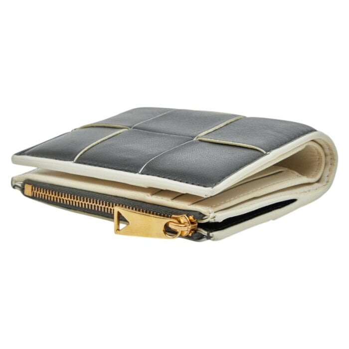 ボッテガヴェネタ マキシイントレチャート カセット 二つ折り財布 ブラック レザー レディース BOTTEGAVENETA 【中古】