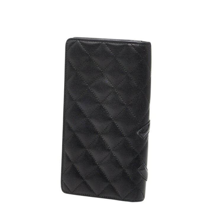 シャネル カンボンライン 長財布 ブラック ラムスキン レディース CHANEL 【中古】