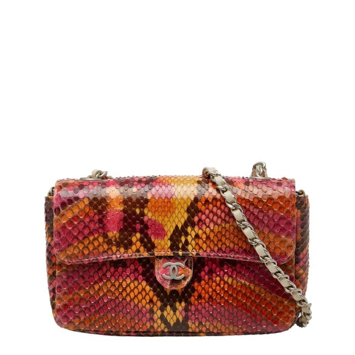 シャネル ココマーク チェーン ミニショルダーバッグ ピンク マルチカラー パイソン レディース CHANEL 【中古】
