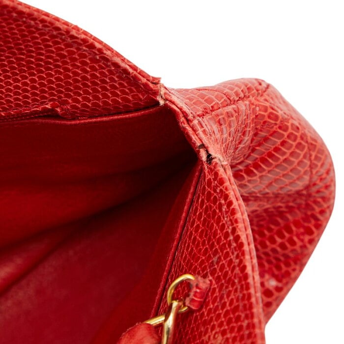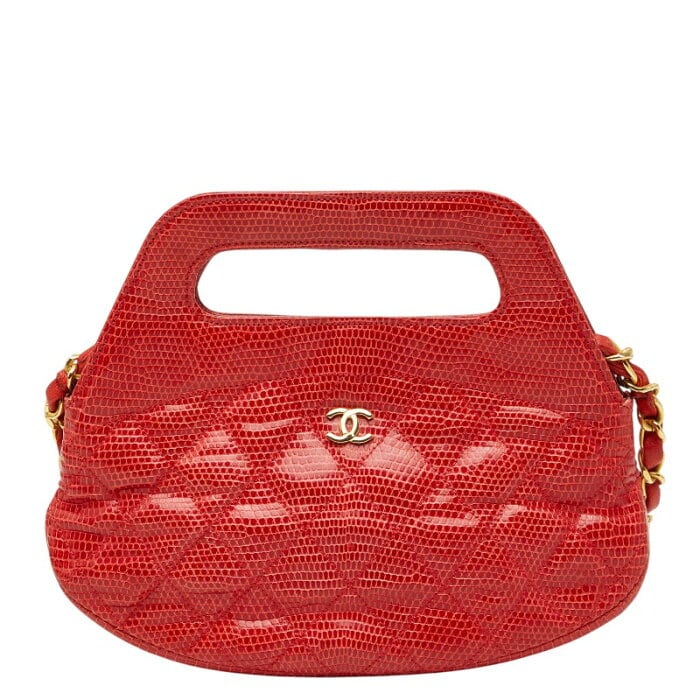 シャネル ココマーク マトラッセ チェーンショルダーバッグ ミニハンドバッグ 2WAY レッド リザード レディース CHANEL 【中古】