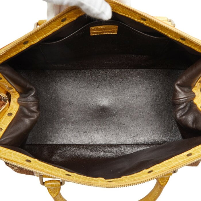 ルイ ヴィトン モノグラム トロンプルイユ トロンプルイユ アンジュニュー ハンドバッグ M92712 ブラウン イエロー ベルベット アリゲーター レディース LOUIS VUITTON 【中古】