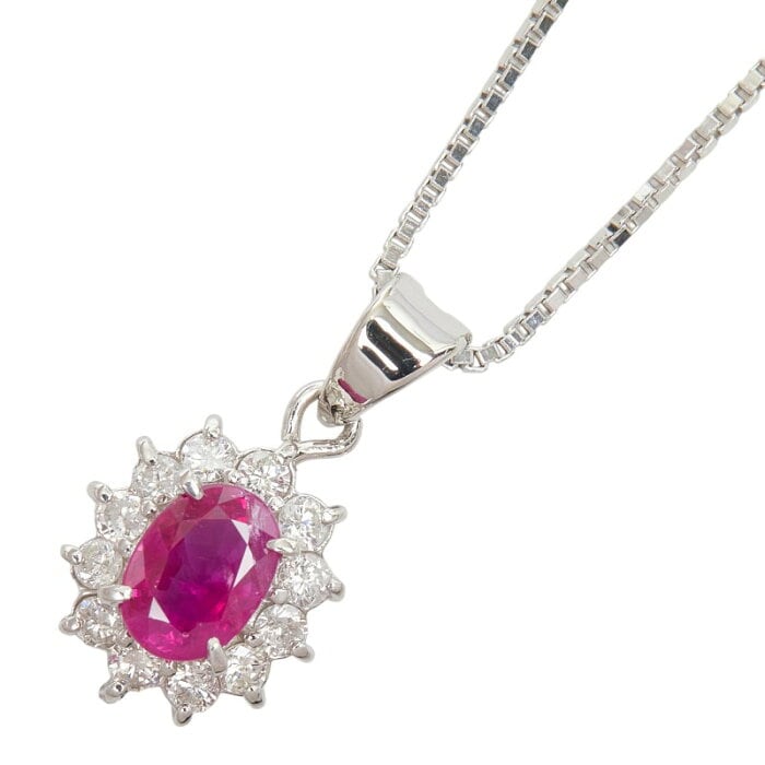 Pt850 プラチナ PM ピーエム ルビー1.03ct ダイヤ0.40ct ペンダント ネックレス レディース 【中古】