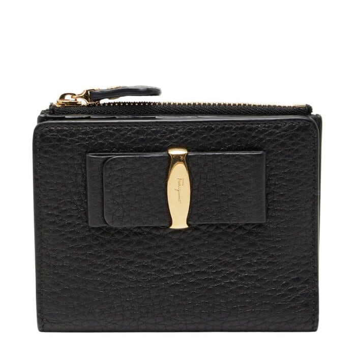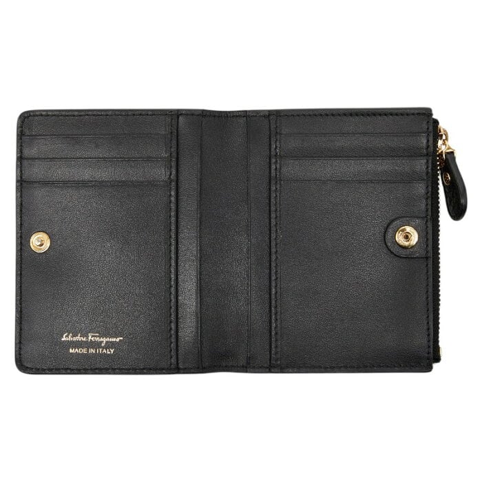 サルヴァトーレフェラガモ ヴァラリボン 二つ折り財布 ブラック レザー レディース Salvatore Ferragamo 【中古】