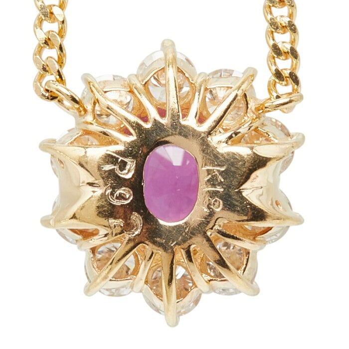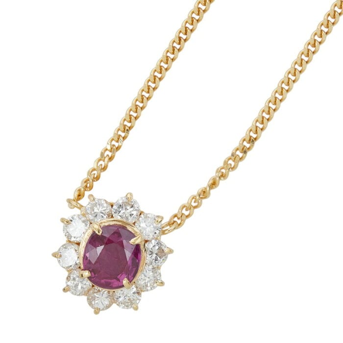 K18YG イエローゴールド ルビー0.92ct ダイヤ0.88ct ペンダント ネックレス レディース 【中古】