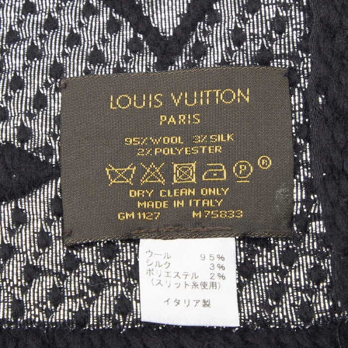 ルイ ヴィトン エシャルプ ロゴマニア シャイン マフラー M75833 ノワール ブラック ウール シルク レディース LOUIS VUITTON 【中古】