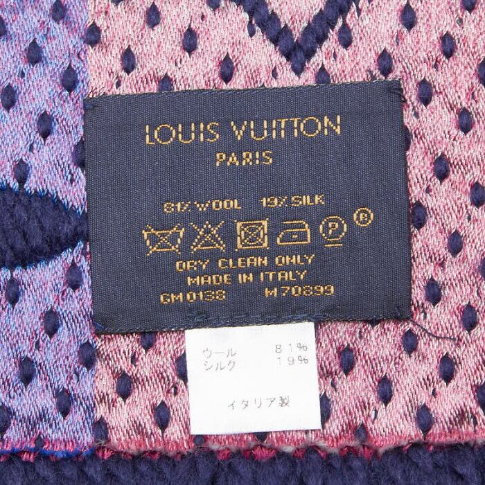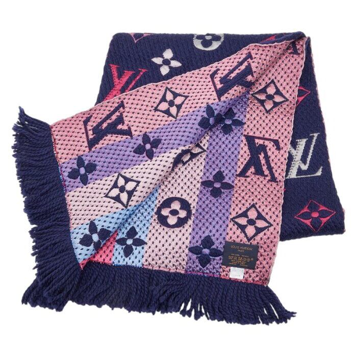 ルイ ヴィトン エシャルプ ロゴマニア マフラー M70899 ネイビー レインボー ウール シルク レディース LOUIS VUITTON 【中古】