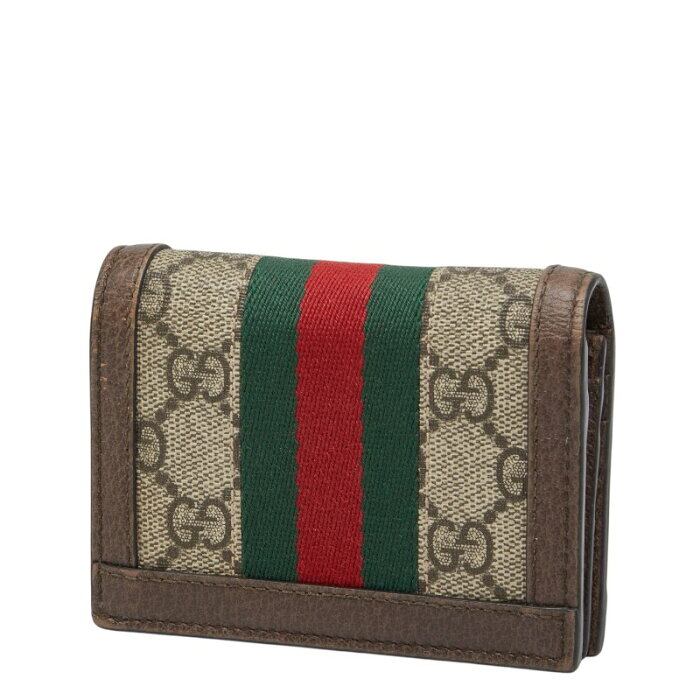 グッチ オフィディア GGスプリーム 二つ折り財布 コンパクトウォレット 523155 ブラウン ベージュ PVC レザー レディース GUCCI 【中古】