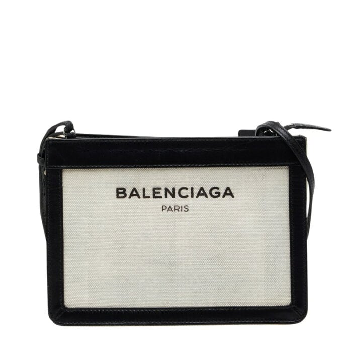 バレンシアガ ネイビーポシェット ショルダーバッグ 390641 ホワイト ブラック キャンバス レザー レディース BALENCIAGA 【中古】