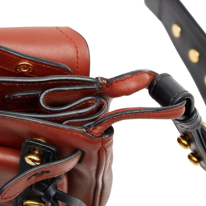 プラダ ロゴ ショルダーバッグ ブラウン ブラック レザー レディース PRADA 【中古】