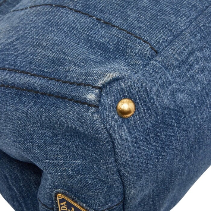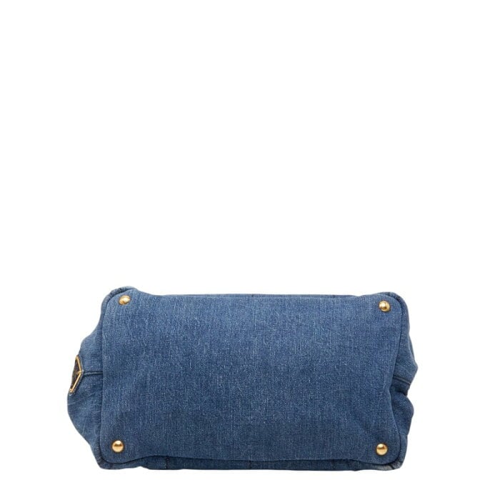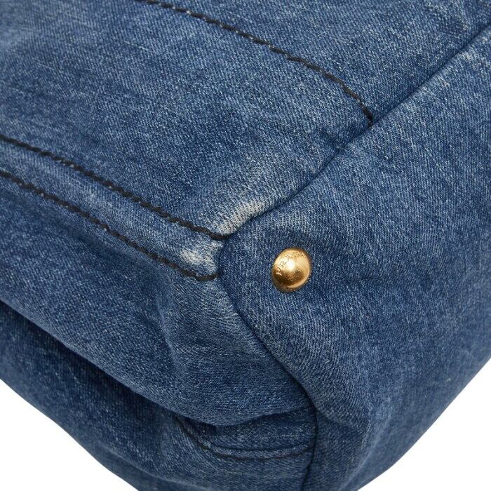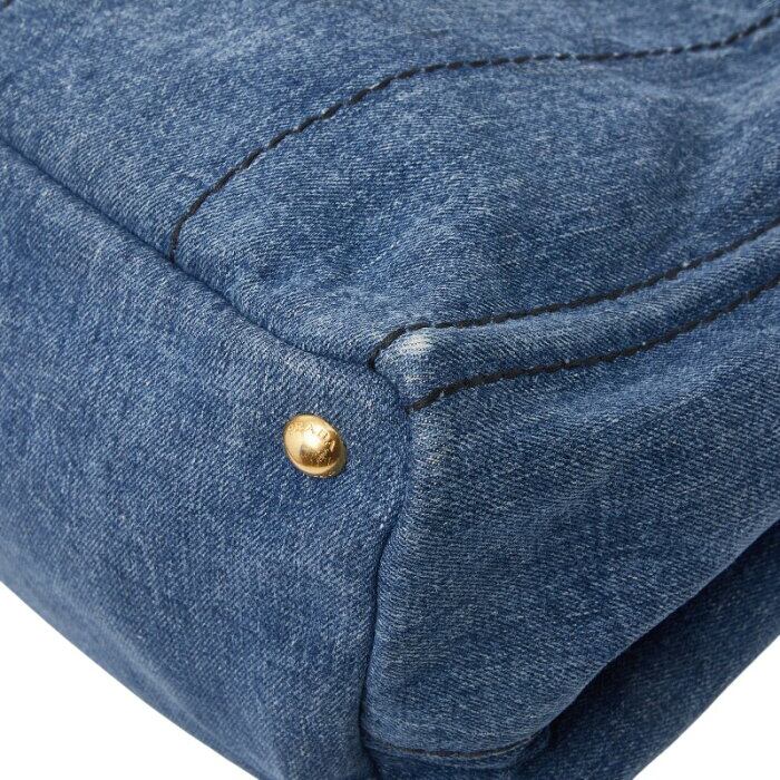 プラダ 三角ロゴプレート カナパ M ハンドバッグ トートバッグ B1877B AVIO インディゴブルー デニム レディース PRADA 【中古】