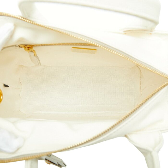 プラダ 三角ロゴプレート カナパ ウィッカー ハンドバッグ ショルダーバッグ 2WAY カゴバッグ 1BG835 ホワイト ラタン キャンバス レディース PRADA 【中古】