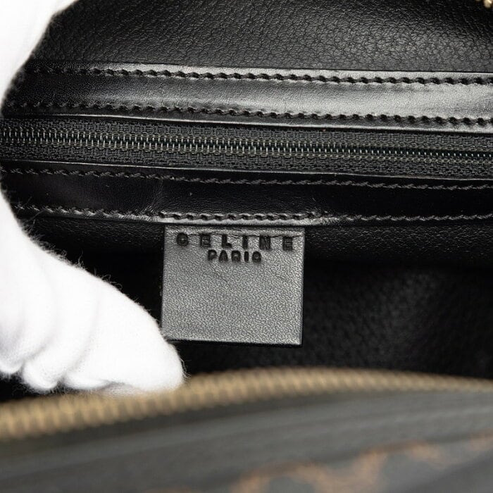 セリーヌ マカダム ハーフムーン ハンドバッグ ブラウン PVC レザー レディース CELINE 【中古】