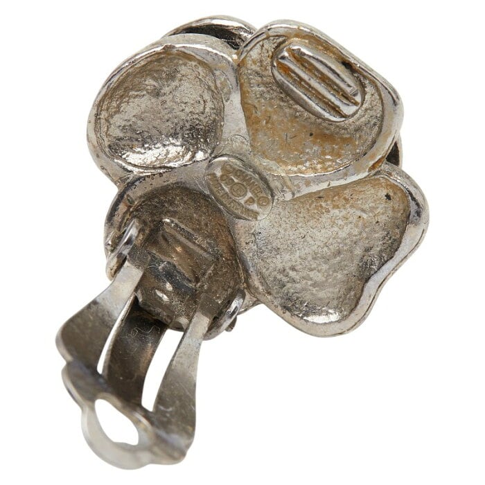 シャネル カメリア ココマーク イヤリング ブラック シルバー メタル レディース CHANEL 【中古】