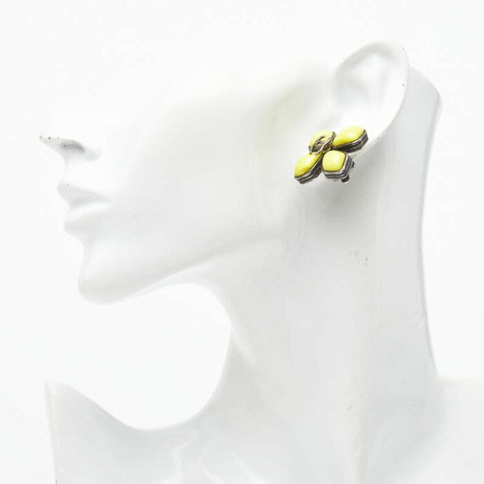 シャネル ココマーク ヴィンテージ フラワーモチーフ イヤリング シルバー イエロー メタル エナメル レディース CHANEL 【中古】