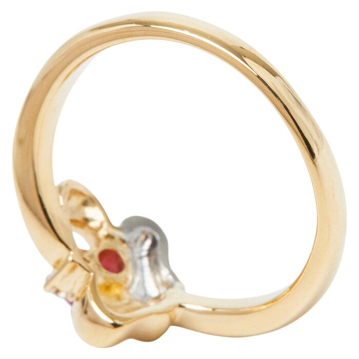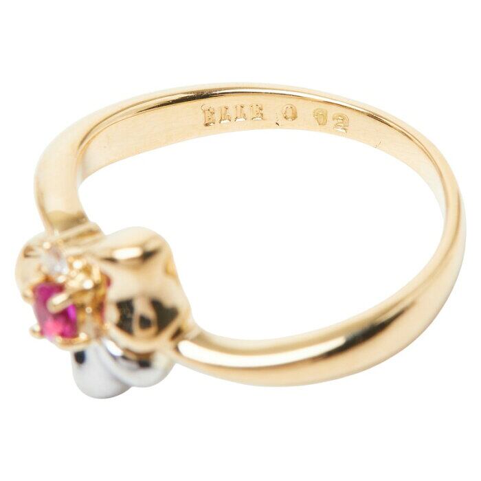 エル K18YG イエローゴールド Pt900 プラチナ 金ベースコンビ ルビー ダイヤ0.02ct リボンモチーフ リング 指輪 レディース ELLE 11.5号 【中古】