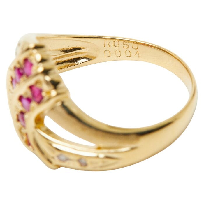 K18YG イエローゴールド ルビー0.50ct ダイヤ0.04ct リング 指輪 レディース 11.5号 【中古】