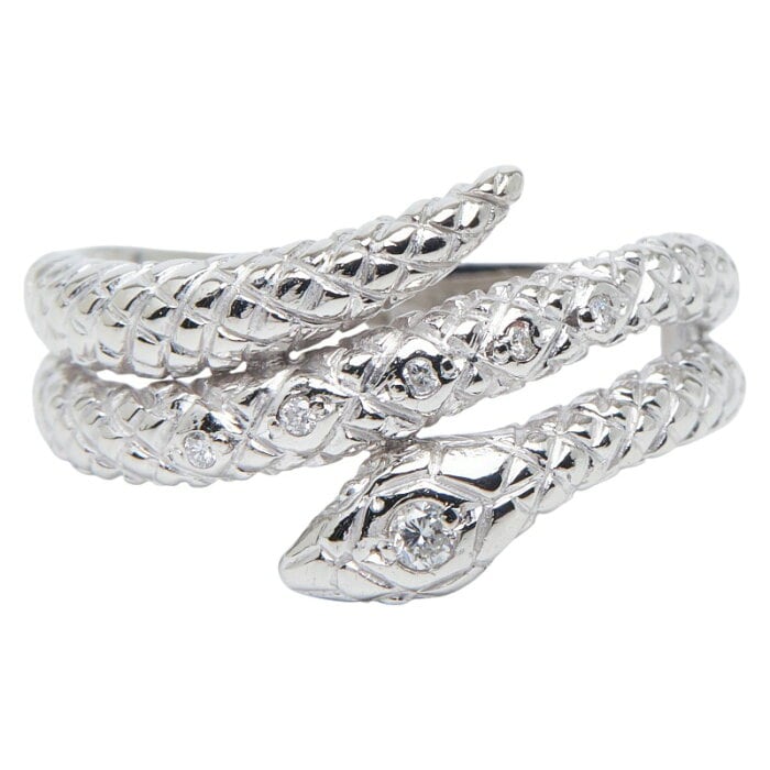 Pt900 プラチナ ダイヤ0.06ct スネークモチーフ リング 指輪 レディース 13.5号 【中古】