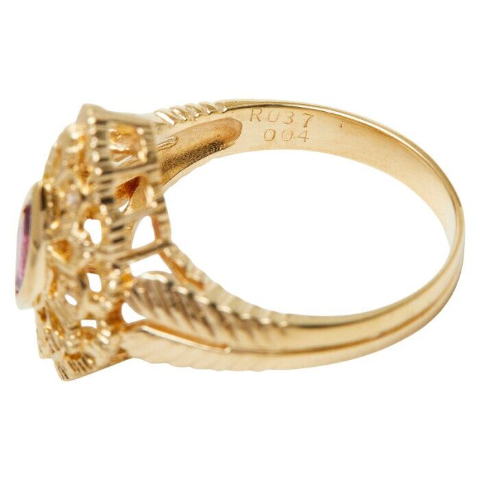 K18YG イエローゴールド ルビー0.37ct ダイヤ0.04ct リング 指輪 レディース 11.5号 【中古】