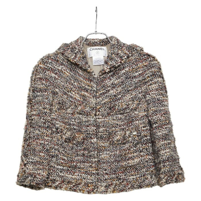 シャネル ツイード ジップアップ パーカー サイズ38 ブラウン マルチカラー ナイロン コットン ウール レディース CHANEL 【中古】