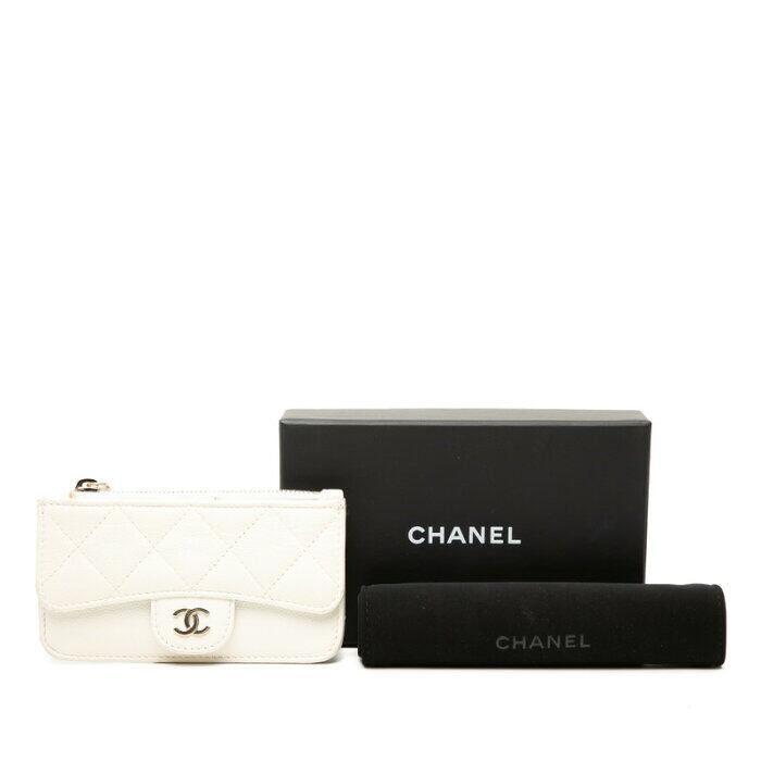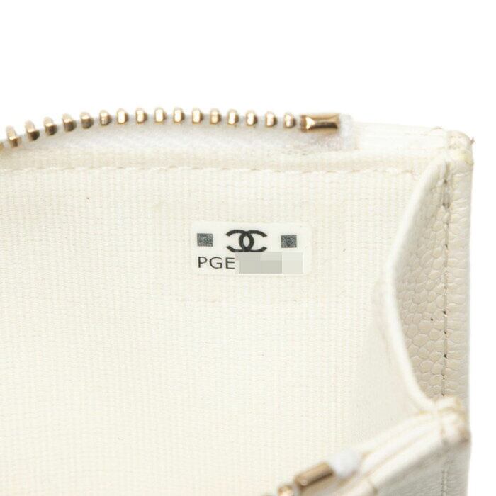シャネル マトラッセ ココマーク コインケース カードケース フラグメントケース ホワイト キャビアスキン レディース CHANEL 【中古】