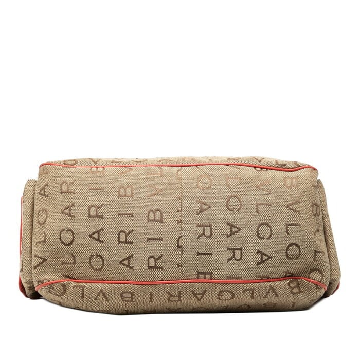 ブルガリ ロゴマニア ハンドバッグ ショルダーバッグ 2WAY ベージュ ピンク キャンバス レザー レディース BVLGARI 【中古】