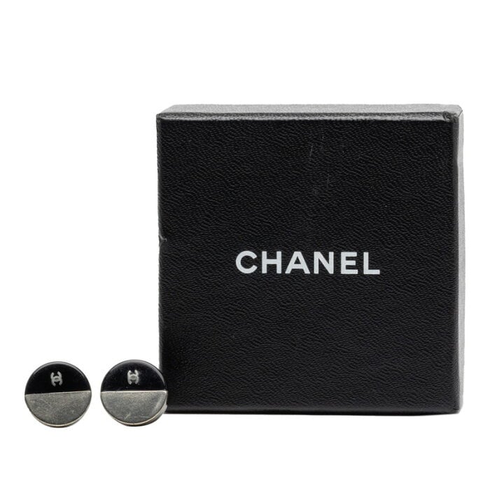 シャネル ココマーク バイカラー ピアス ブラック シルバー メタル エナメル レディース CHANEL 【中古】