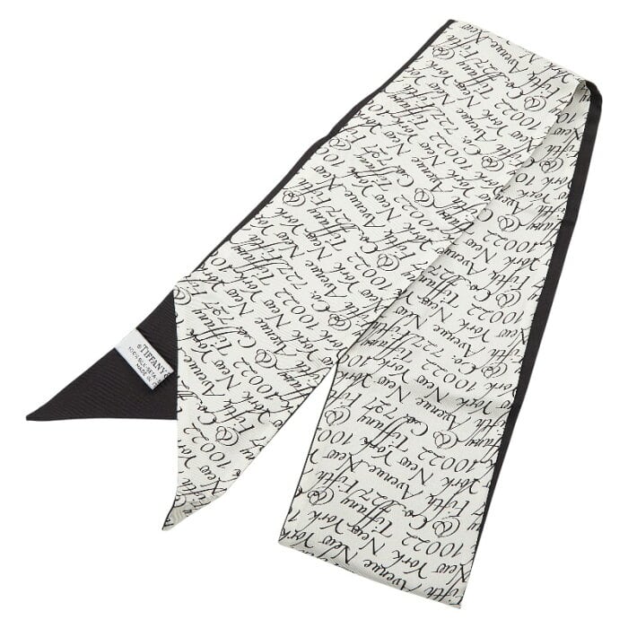 ティファニー スカーフ リボンスカーフ ホワイト ブラック シルク レディース TIFFANY&Co. 【中古】