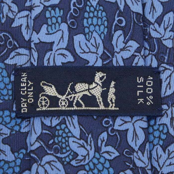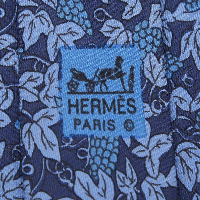 エルメス フラワー 花柄 ネクタイ ブルー シルク メンズ HERMES 【中古】