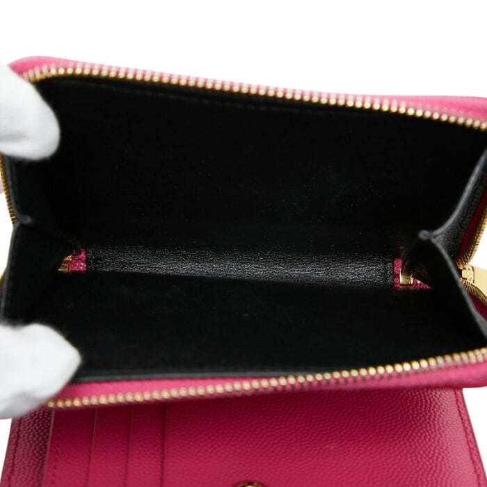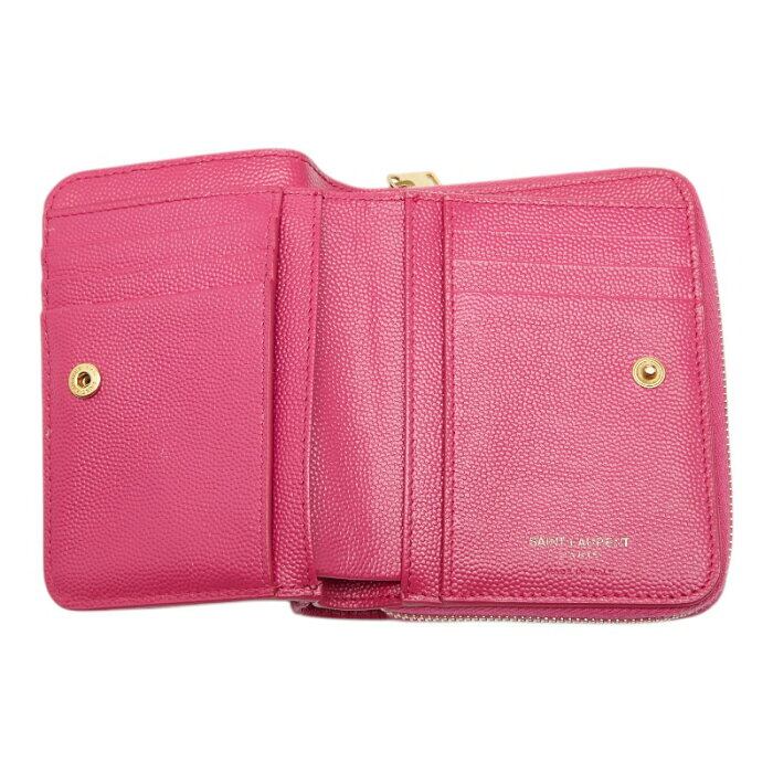 サンローラン YSLロゴ Vステッチ 二つ折り財布 668288 ピンク レザー レディース SAINT LAURENT 【中古】