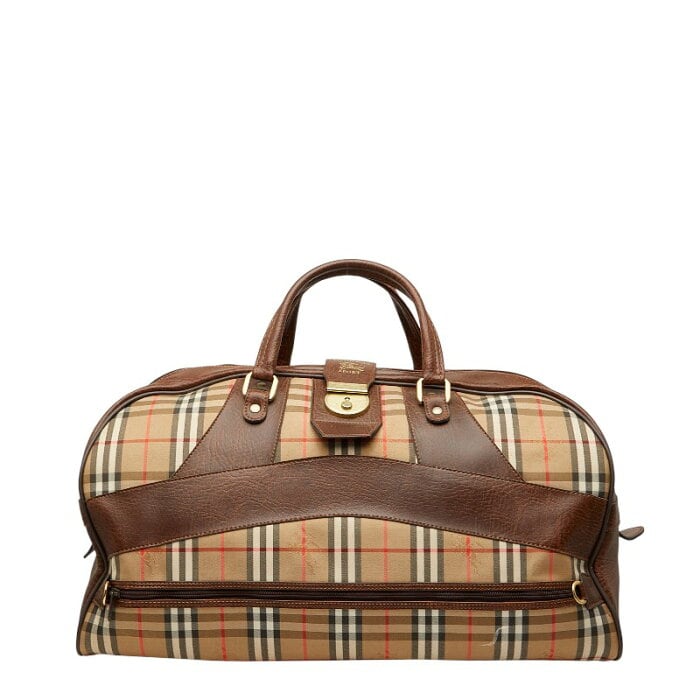 バーバリー スポーツ ノバチェック シャドーホース ボストンバッグ ブラウン ベージュ キャンバス レザー レディース BURBERRY 【中古】
