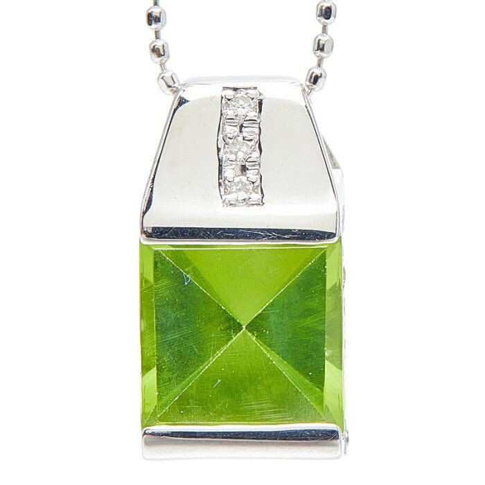 K18WG ホワイトゴールド ペリドット2.32ct ダイヤ0.145ct ペンダント ネックレス レディース 【中古】
