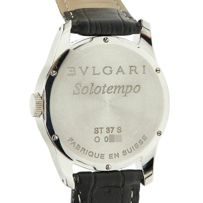 ブルガリ ベルト(社外品) ソロテンポ 腕時計 ST37S クオーツ ブラック文字盤 ステンレススチール レザー メンズ BVLGARI 【中古】