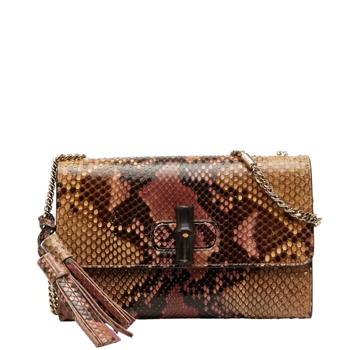 グッチ バンブー タッセル チェーン ショルダーバッグ 387611 ベージュ ブラウン ピンク パイソン レディース GUCCI 【中古】