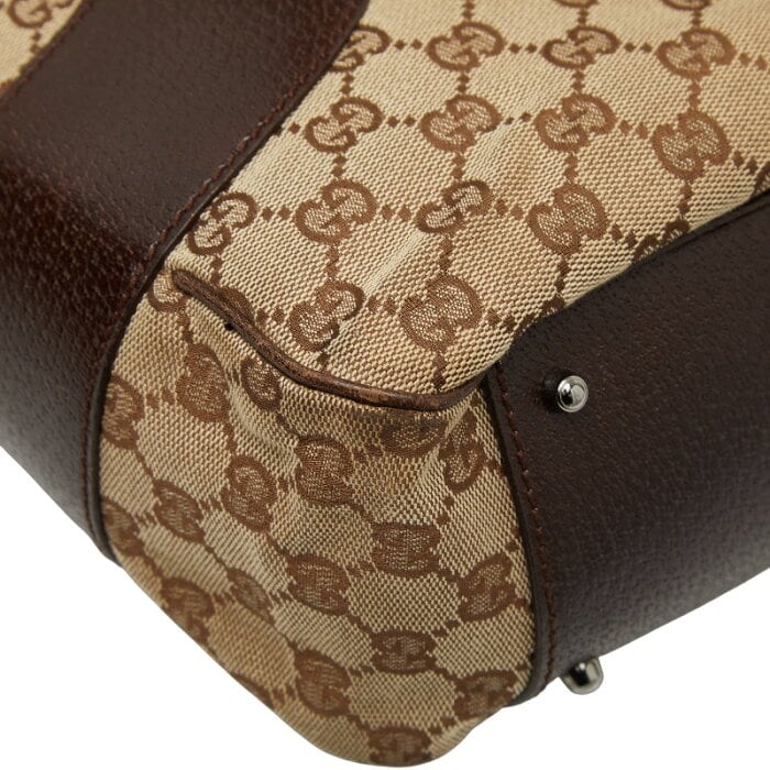 グッチ GGキャンバス ハンドバッグ トートバッグ 113011 ブラウン ベージュ キャンバス レザー レディース GUCCI 【中古】