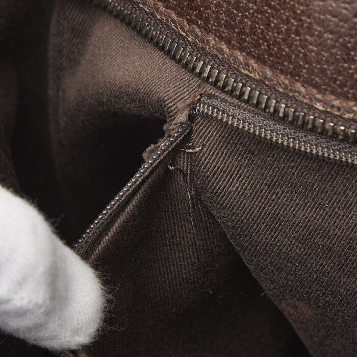 外側: スレ サイド、スレ、はがれ 底面、スレ、汚れ、型崩れ ハンドル、スレ、付け根にはがれ 金具、スレ 開閉口、スレ、ひび、はがれ 内側、スレ、糸ほつれ、汚れ