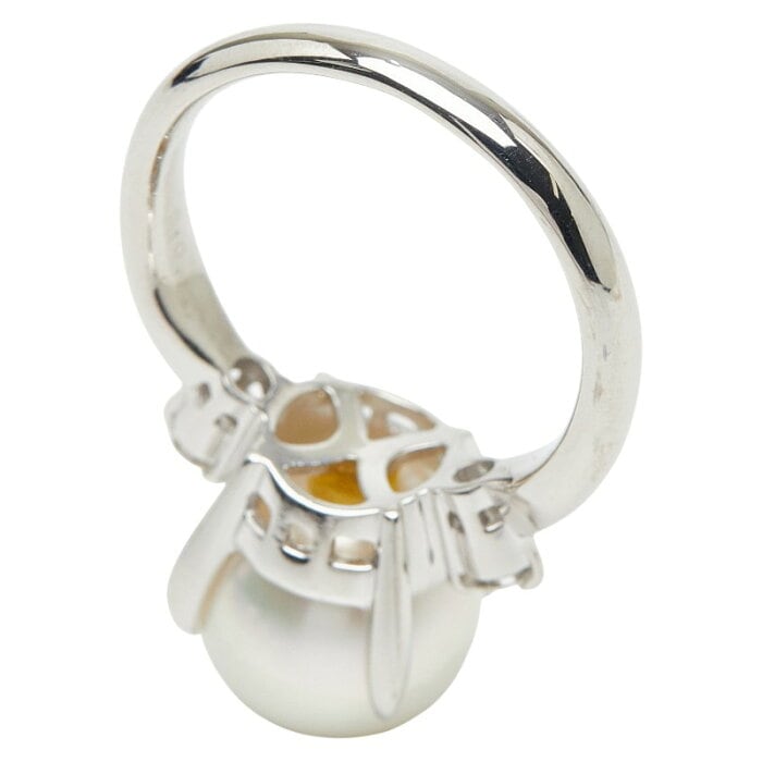 Pt900 プラチナ 白蝶真珠10.4mm ダイヤ0.15ct リング 指輪 レディース 11.5号 【中古】