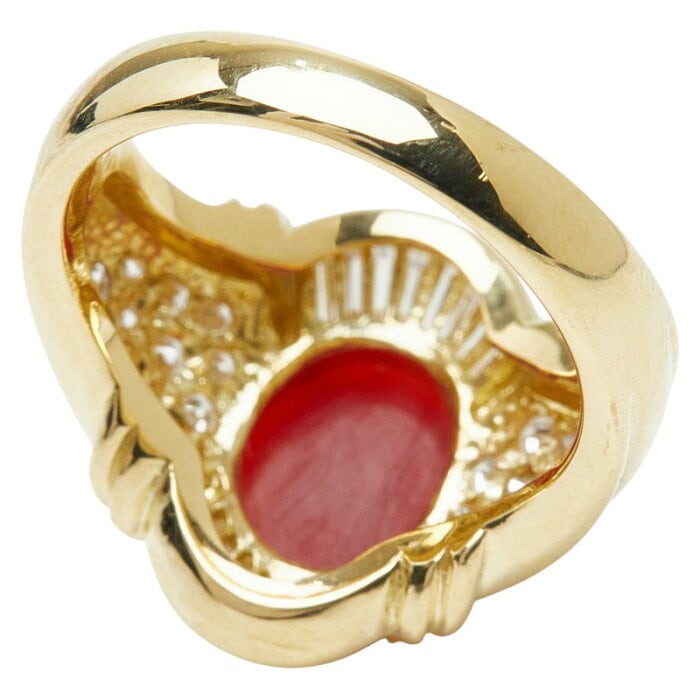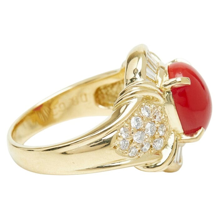 K18YG イエローゴールド 珊瑚(コーラル) 珊瑚 ダイヤ0.63ct サンゴ リング 指輪 レディース 10.5号 【中古】