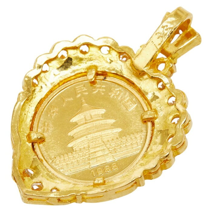 K24YG イエローゴールド キュービックジルコニア パンダコイン 5元 1988年 1/20oz ペンダントトップ レディース 【中古】
