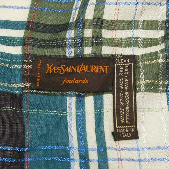 イヴ サンローラン 大判 チェック ストール マルチカラー ウール シルク レディース YVES SAINT LAURENT 【中古】