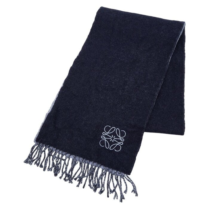ロエベ アナグラム マフラー ネイビー ライトブルー ウール カシミヤ レディース LOEWE 【中古】