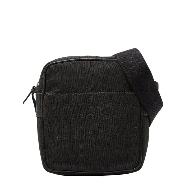 ブルガリ ロゴマニア ショルダーバッグ ブラック キャンバス レザー レディース BVLGARI 【中古】