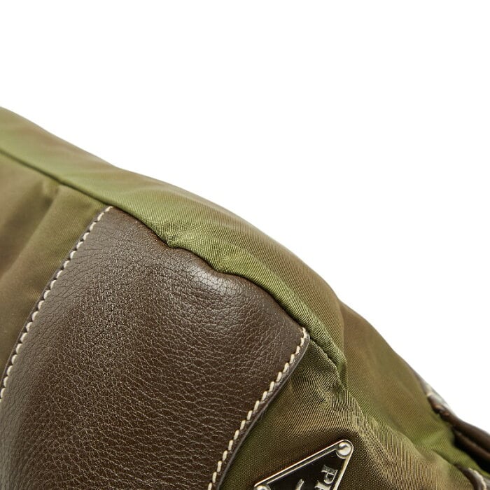 プラダ 三角ロゴプレート ワンショルダーバッグ BR2417 カーキ ブラウン ナイロン レザー レディース PRADA 【中古】