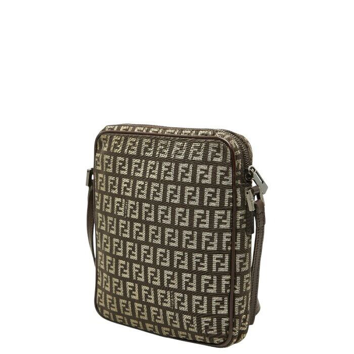 フェンディ ズッキーノ 斜め掛け ショルダーバッグ 8BT053 ブラウン キャンバス レザー レディース FENDI 【中古】