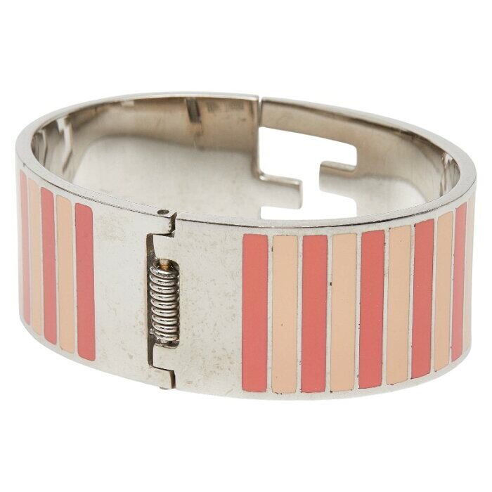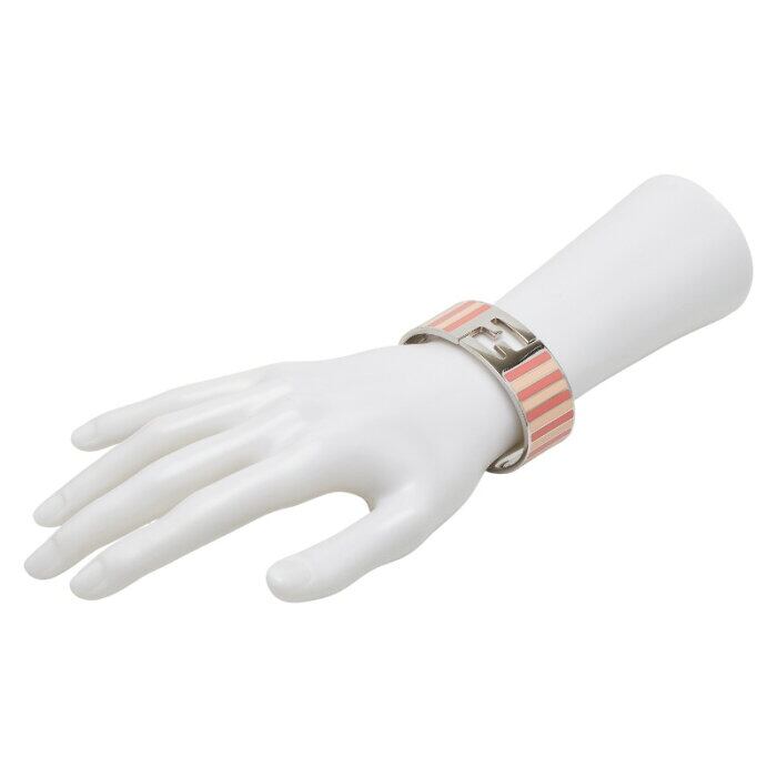 フェンディ ストライプ バングル サイズM ピンク シルバー メタル レディース FENDI 【中古】