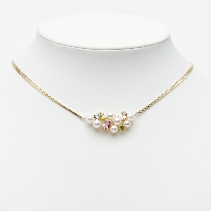 タサキ K18YG イエローゴールド ダイヤ0.03ct アコヤパール5.0~5.9mm マルチ色石 ネックレス レディース TASAKI 【中古】