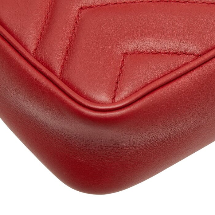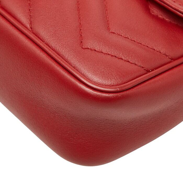 グッチ GGマーモント キルティング スーパーミニ チェーン ショルダーバッグ 476433 レッド レザー レディース GUCCI 【中古】