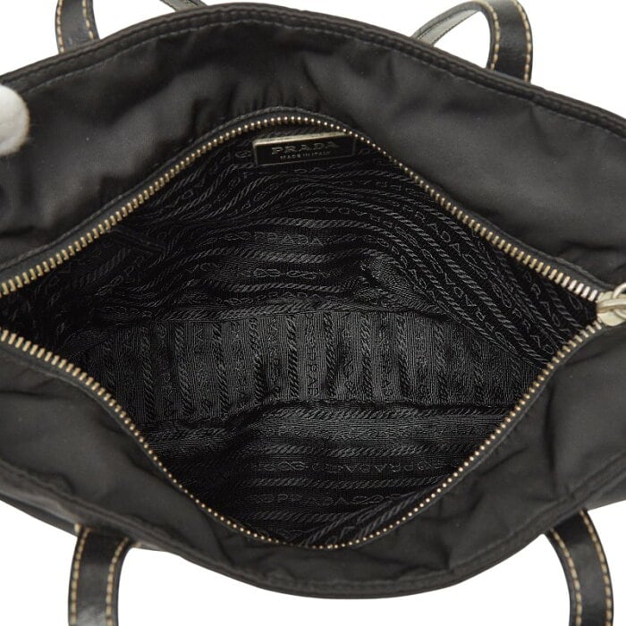 プラダ 三角ロゴプレート トートバッグ ブラック ナイロン レザー レディース PRADA 【中古】