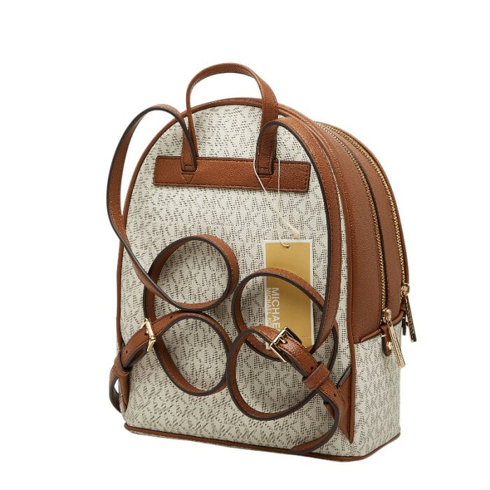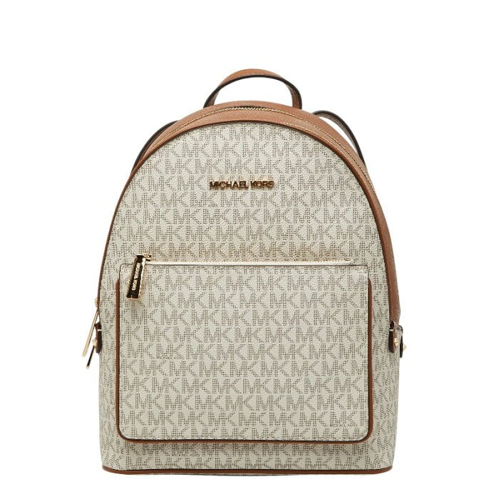 マイケルコース MKシグネチャー リュック バッグパック ホワイト ブラウン PVC レザー レディース Michael Kors 【中古】