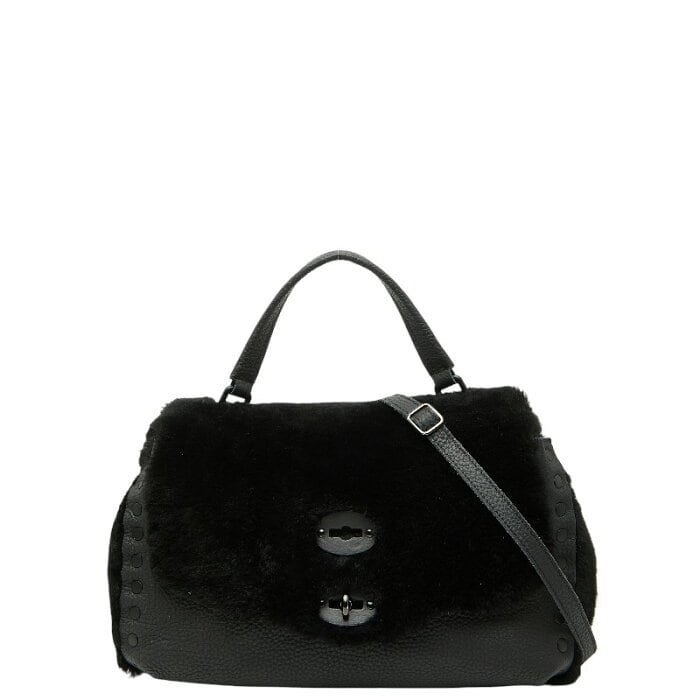 ザネラート ポスティーナ S ハンドバッグ ショルダーバッグ 2WAY ブラック レザー ムートン レディース ZANELLATO 【中古】