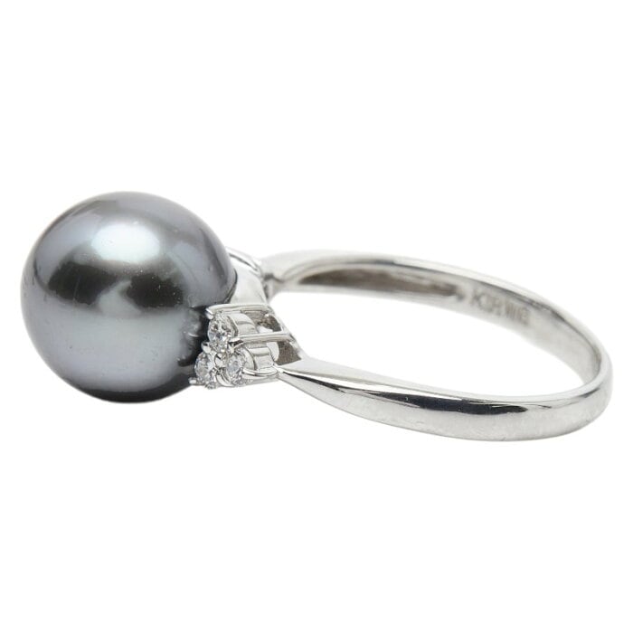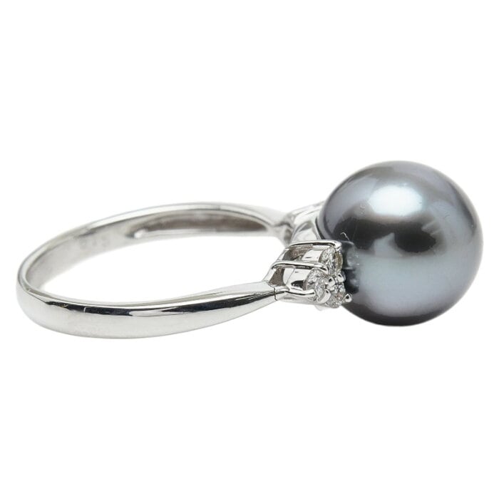 K18WG ホワイトゴールド 黒蝶真珠10mm ダイヤ0.15ct リング 指輪 レディース 10.5号 【中古】